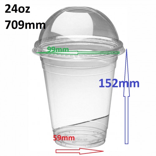 Plastic PET cups & Dome Lids Plain. 24oz (709ml)