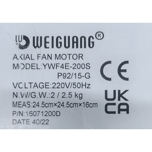 - Product Code: AXIAL FAN WEIGUANG YWF4E-200S-G