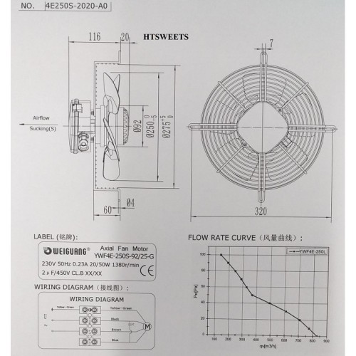 AXIAL FAN WEIGUANG YWF4E-250S-G, (SUCTION)